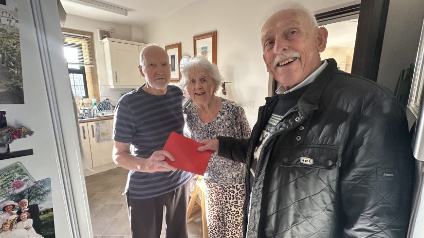 Chairman David Corney giving Christmas vouchers to residents of Davenport Homes